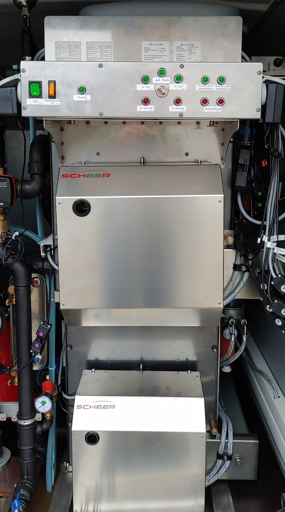 Ein im Anhänger integrierter 700 Liter Tank sorgt dabei für einen ausdauernden Heizbetrieb.