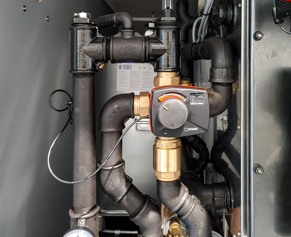 Mischer kann auf jeden beliebigen Wert ab 20°C für den Vorlauf eingestellt werden